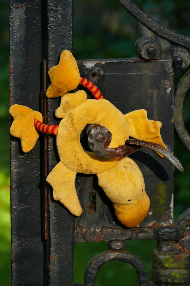 die schmutzige Ente an der Türklinke bittet um Asyl.