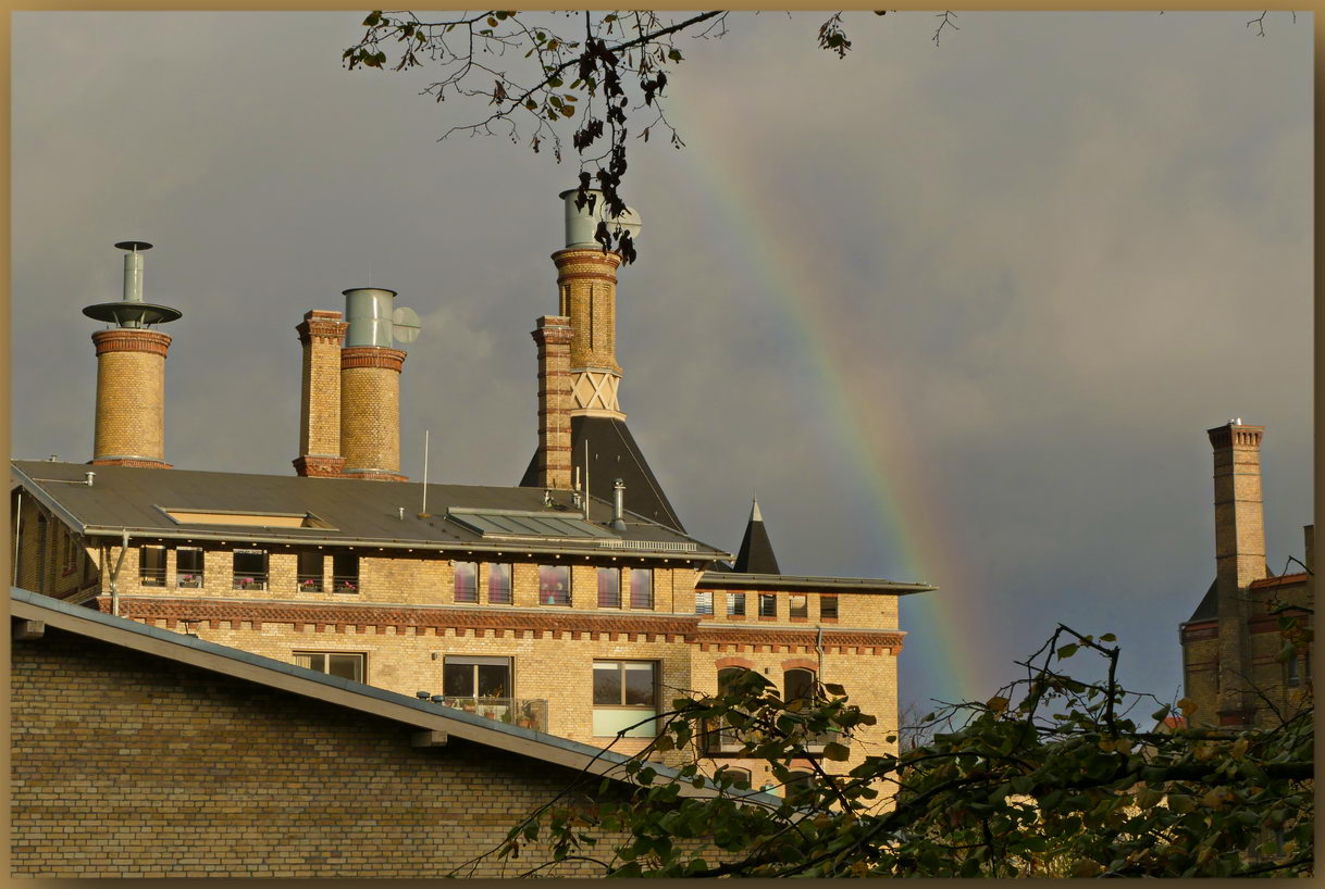 Zum Abschied küsst der Regen die Blätter, dann klettert er den Regenbogen hoch – die Sonne ist durstig. Sogar das goldene Herbstlicht kommt für wenige Augenblicke zu Besuch.